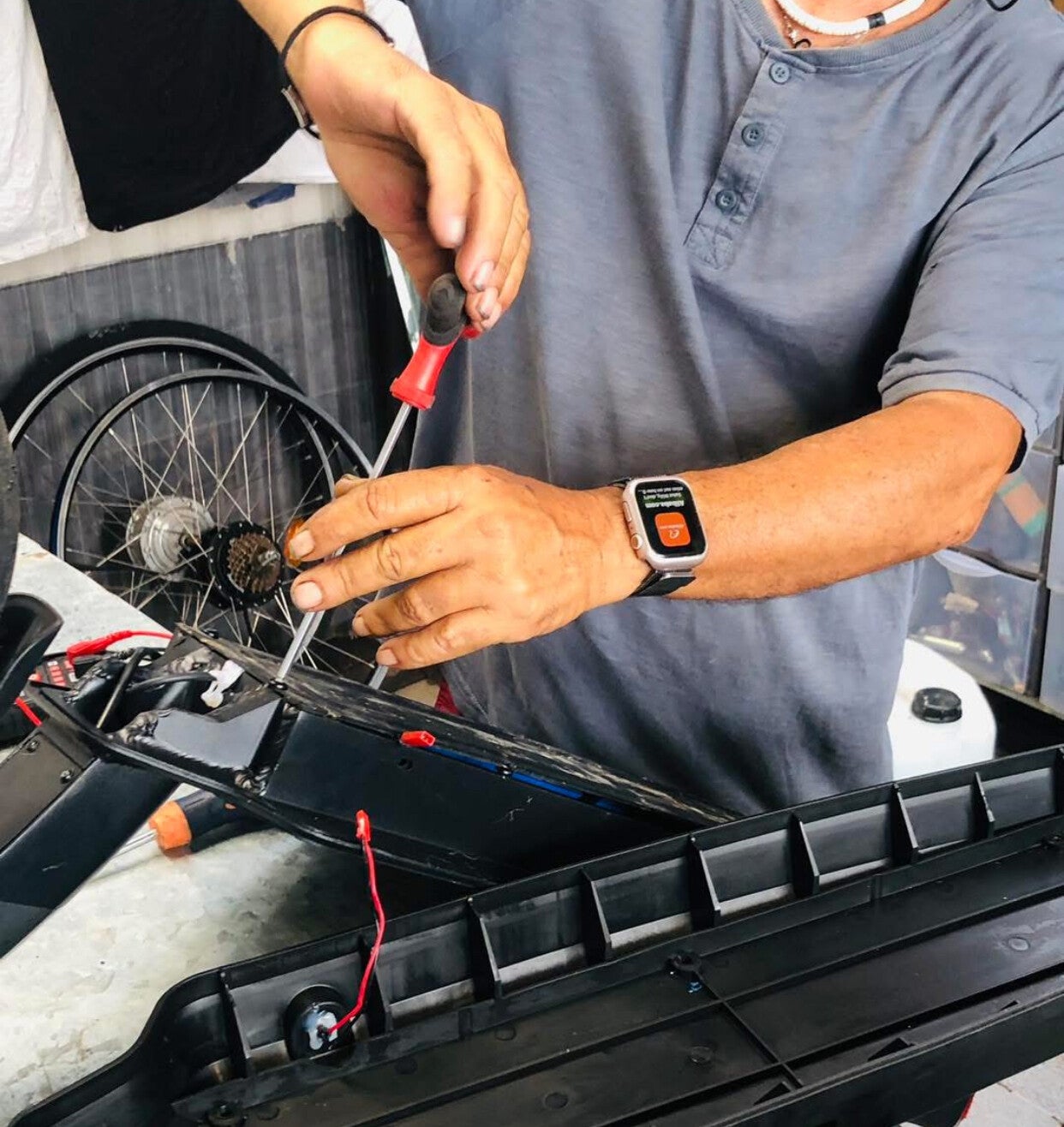 Nous vous apportons une aide concrète à travers un service de réparation expert, la vente de pièces détachées de qualité, des accessoires pour vélos et trottinettes, la location de vélos électriques, et même la régénération de vos batteries.